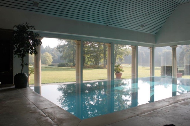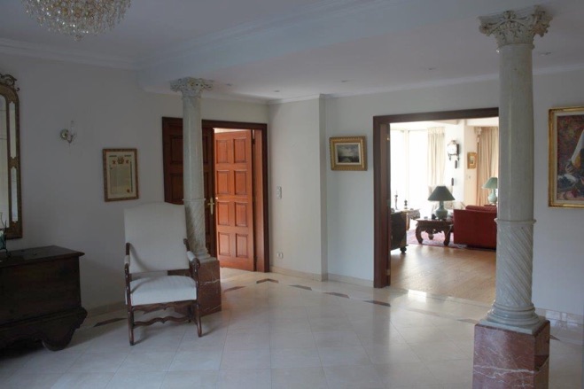 Ruime ontvangsthal met 2 marmeren zuilen en ingebouwde vestiairekast, volledig ingerichte moderne keuken met ingebouwde toestellen en ruime ontbijthoek, ruime living met open haard, eetkamer met ingebouwde kasten, doorgang/traphal met ingebouwde kast elektra, grote studeerkamer, vestiaire met wastafel, wc, bijkeuken met ingebouwde kasten, aparte ingang, zeer ruime garage voor 2 auto's, deuren met afstandsbediening. Grote terrassen, groot en luxueus geïnstalleerd binnen zwembad met jetstream en bar, ruimte technieken (vloerverwarming woning/zwembad/airco/centraal stofzuigsysteem, B&O soundsysteem) vestiaire en wastafel, sauna, stoomdouche, wc, aparte ingang met trap naar gastenverblijf op verdieping.